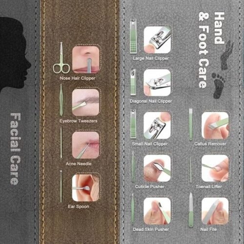 - *The nail clippers sets Includes Large nail clipper ,medium nail clipper , oblique nail cutter , manicure plier, Cuticle knife , oblique knife , acne needle , scraper ,nail file , double-headed pick, eyebrow clip , dig ear spoon , spiral Ear spoon , dead skin fork , eyebrow cut. The best nail scissors set. cutter clippers scissors Nail