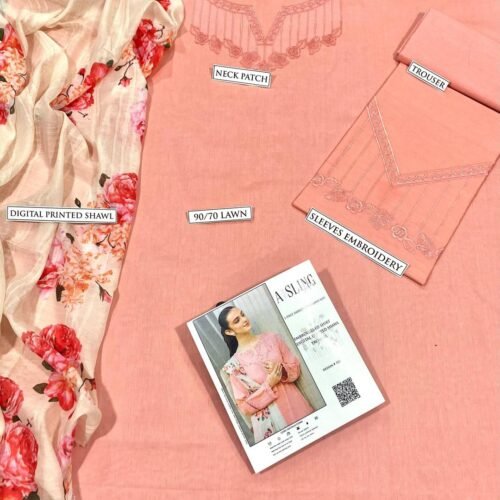 3 Pcs Women’s Unstitched Embroidered Suit (Pink)
