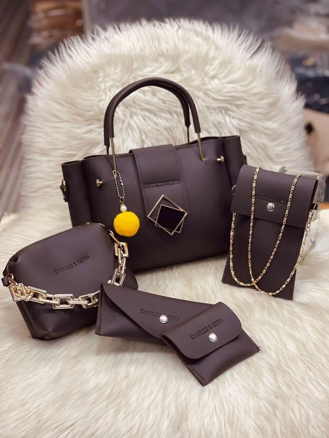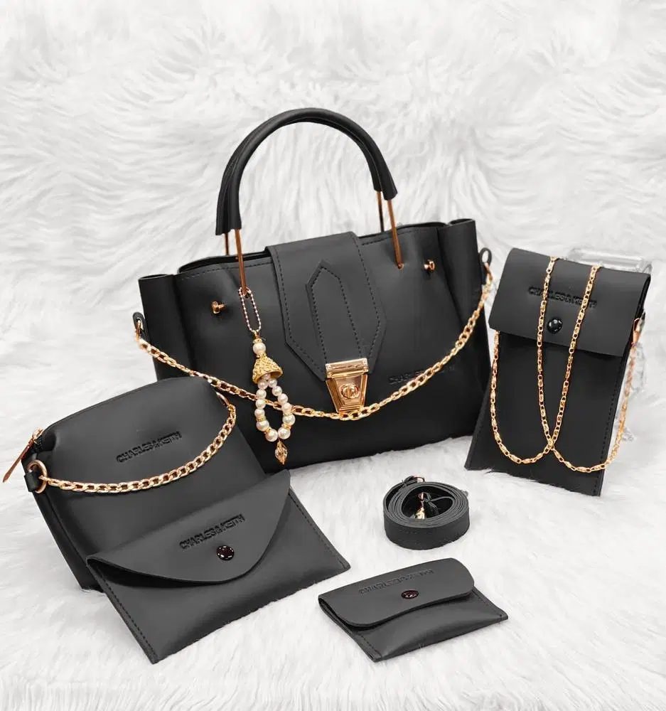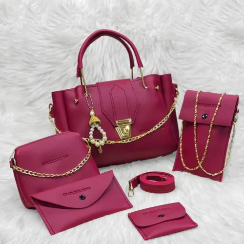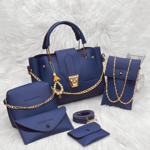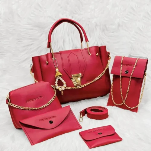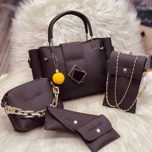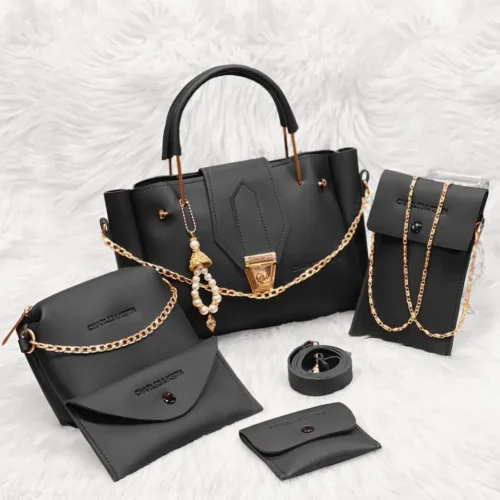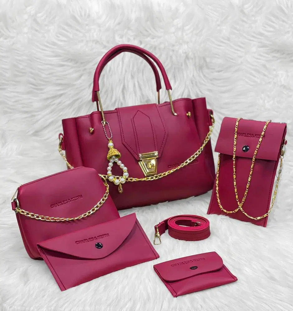 5 Pcs Women’s PU Leather Plain Hand Bag Set